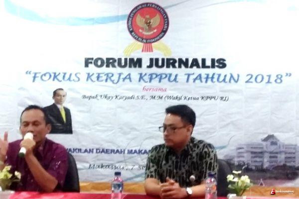 MAKASSAR, -- Forum jurnalis tingkat kota Makassar yang digelar komisi pengawas persaingan usaha (KPPU) Makassar dan dibawakan langsung oleh wakil ketua KPPU Republik Indonesia periode 2018-2023 Ukay Karyadi SE,MM, bertemakan "Fokus Kerja KPPU Periode 2018" di Makassar.