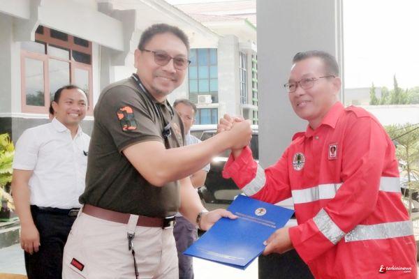 Di akhir kunjungan Dr. Ir Ruandah Agung Sugadirman. M, memberikan sertifikat sebagai tanda terima kasih kepada pasukan Manggala Agni yang telah bekerja ikhlas.