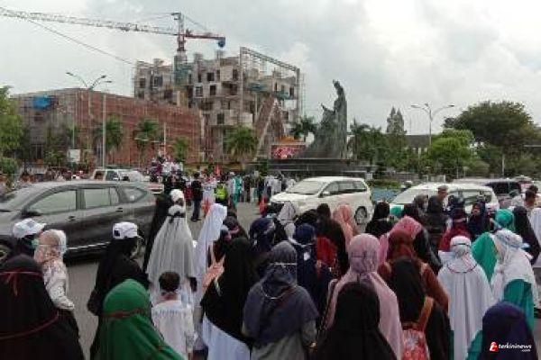 PEKANBARU, RIAU - Ratusan massa tersebut datang dari berbagai kalangan. Diantaranya yakni mahasiswa yang tergabung dalam Himpunan Mahasiswa Islam (HMI).