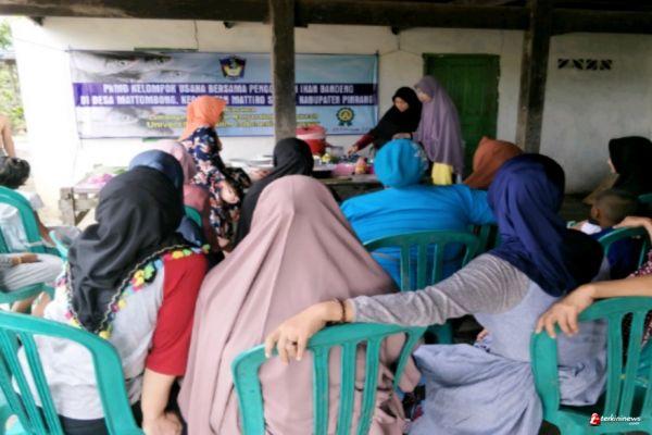 Melatih ibu-ibu rumah tangga dan remaja putri dalam mengolah ikan bandeng, di desa Mattombong Kecamatan Matiro Sompe Kabupaten Pinrang, yag melatar belakangi kegiatan, dan bahwa masyarakat di desa ini sebagian besar penduduknya bekerja sebagai petani tambak yang setiap tahun menghasilkan ikan bandeng cukup besar di Kabupaten Pinrang.
