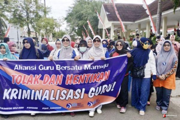 Aksi damai star dari lapangan Ahmad Kirang mamuju dengan berjalan kaki menuju gedung DPRD dan disambut ketua DPRD mamuju Suraidah yang diterima anggota dewan Abdul Malik Balako dan menyesalkan adanya kekerasan terhadap guru. Terang Sutikno