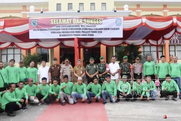 Padang Lawas, -- Dalam rangka pengamanan tempat pemungutan suara pada Pemilihan Umum Legislatif, Pemilihan Presiden dan Wakil Presiden tahun 2019. Pemerintah Kabupaten Padang Lawas Utara menggelar Apel Gabungan.