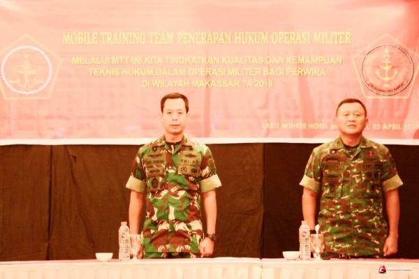 Badan Pembina Hukum (Babinkum) TNI menggelar kegiatan Mobile Training Team (MTT) penerapan Hukum dalam Operasi Militer Tahun Anggaran 2019, berlangsung di Hotel La’raz Jl. Lagaligo Makassar, Selasa (23/04).