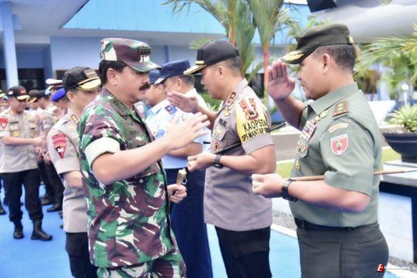 MAKASSAR, -- Pangdam XIV/Hasanuddin Mayjen TNI Surawahadai, S.I.P., M.Si bersama para Pangkotama wilayah Makassar dan Kapolda Sulsel, mengantar keberangkatan rombongan Panglima TNI Marsekal TNI Hadi Tjahjanto, S.I.P. dan Kapolri Jenderal Pol Prof. H. Tito Karnavian, Ph.D. di Galaktika Lanud Sultan Hasanuddin Kabupaten Maros,