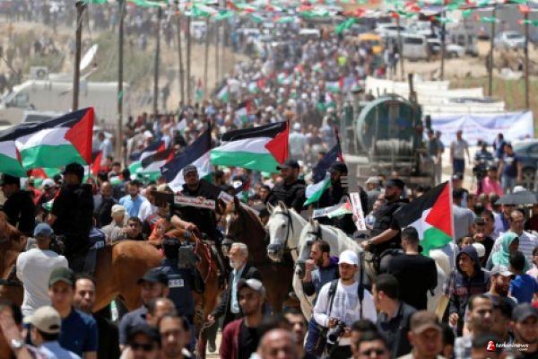 Aksi dimulai dari depan pusara mendiang Presiden Yaser Arafat ke kota Yasser Arafat, Tepi Barat tengah. Saat suara sirene berbunyi pada pukul 12 siang, para peserta aksi berdiam diri sejenak selama 71 detik. ini menandakan bahwa 71 tahun sudah tragedi nakhba menimpa bangsa Palestina, dimana mereka diusir dari secara paksa dari rumah-rumah dan tanah-tanah mereka.