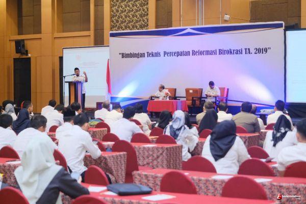 Makassar - Pemprov Sulsel menggelar Bimbingan Teknis (Bimtek) Percepatan Reformasi Birokrasi Tahun Anggaran 2019 yang berlangsung di Swiss Bell Hotel, Makassar, Rabu (22/5).