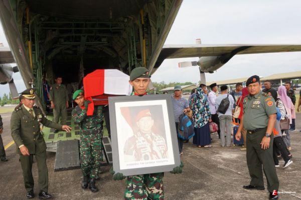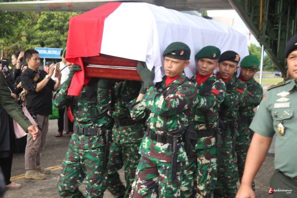 Suasana duka menyelimuti kedatangan jenazah, setelah menempuh perjalanan via udara kurang lebih 2 jam 20 menit dari Lanud Halim Perdana Kusuma Jakarta.