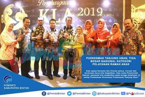 BINTAN, -- Berturut-turut penghargaan yang diterima Pemerintah Kabupaten Bintan. Sempena Hari Anak Nasional tahun 2019, Bintan yang kembali dianugerahi Kabupaten Layak Anak, semakin menunjukkan perkembangan positif dengan meraih penghargaan Puskesmas terbaik ketiga se Indonesia dalam kategori Pelayanan Ramah Anak (PRA).