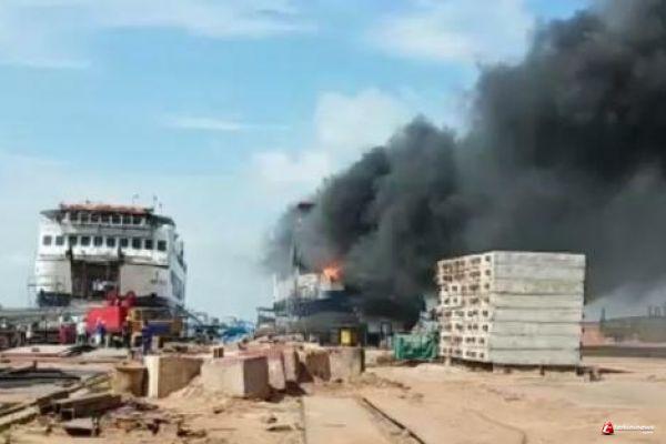 KEPRI - Kapal Roro KMP Sembilang yang biasanya melayari rute Dabo-Batam dan Dabo - Kuala Tungkal yang saat ini proses docking di PT. Karimun Marine Shipyard (KMS) terbakar pada Rabu (31/7/2019) pagi.