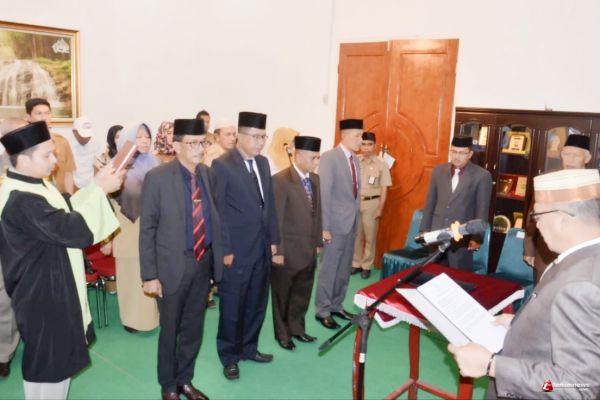 Prosesi pelantikan dan pengambilan sumpah jabatan yang digelar di Ruang VIP Kantor Bupati Lingga ini dihadiri oleh sejumlah pejabat di lingkungan pemkab Lingga, mulai dari Asisten Pemerintahan, Asisten Ekonomi Kebangsaan, Asisten Administrasi Umum, serta beberapa kepala OPD dan rohaniawan perwakilan dari Kemenag Lingga.