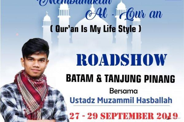 BATAM – Ustad muda Muzammil Hasballah akan mengadakan Roadshow ke Kota Batam dan Tanjungpinang. Agenda tersebut akan berlangsung selama 2 hari sejak tanggal 27 hingga 28 September 2019.