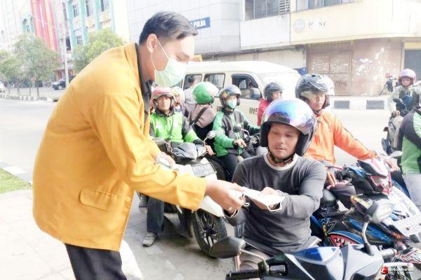 PALEMBANG, - Pimpinan Wilayah Ikatan Pelajar Muhammadiyah Sumatera Selatan (PW IPM) dan Pimpinan Daerah IPM Kota Palembang melakukan kegiatan IPM Peduli pada Sabtu (5/10) dengan membagikan 2000 masker kepada pengendara yang melintas di Bawah fly over simpang Polda Palembang.