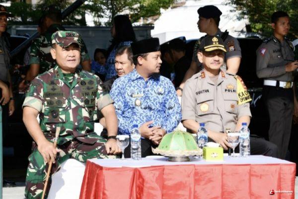 MAKASSAR, -- Dalam rangka kesiapan pengamanan Pelantikan Presiden dan Wapres RI Tahun 2019, Pangdam XIV/Hasanuddin Mayjen TNI Surawahadi, S.IP., M.Si bersama Kapolda Sulsel Irjen Pol Drs Mas Guntur Laupe pimpin apel gelar pasukan di Lapangan Hasanuddin, Jl. Jenderal Sudirman Makasssar.