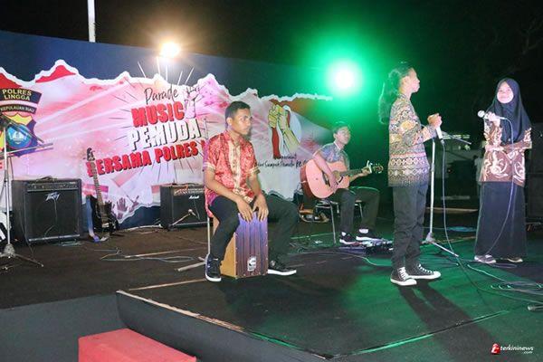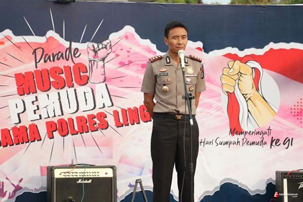 LINGGA - Berbagai kegiatan dilakukan dalam memperingati hari Sumpah Pemuda, pada Sumpah Pemuda ke-91 Tahun 2019 di Lingga, pelaksanaan Parade Musik Pemuda Lingga bersama Polres Lingga. Kegiatan yang dilaksanakan di halaman Gedung Nasional Dabo Singkep tersebut diikuti sebanyak 19 grup band asal Kabupaten Lingga dan dihadiri ribuan penonton.