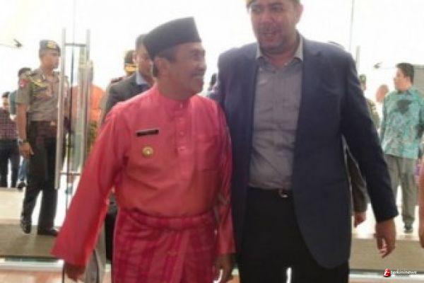 Datuk Wira tampak menakan baju kemeja warna krem dibalut dengan jas warna biru tua dan celana kain warna hitam. Setiba di VIP Lancang Kuning Bandara SSK II Pekanbaru, Datuk Wira langsung disambut Langsung oleh Gubernur Riau Syamsuar dengan lantunan suara kompang.