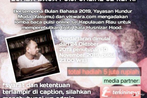 Riau, -- Yayasan Kundur Muda (YAKUMU) bekerjasama dengan Viswara.com menggelar Lomba Video Baca Puisi se-Kepulauan Riau memperebutkan piala milad Husnizar Hood . Event ini juga bersempena menyemarakkan perayaan budaya literasi bulan bahasa.