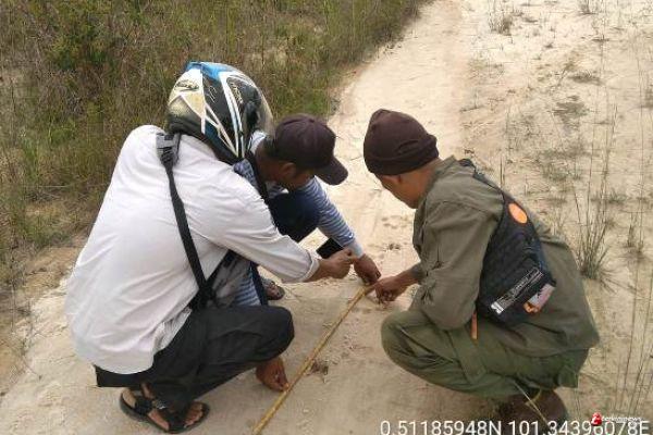PEKANBARU- Minggu (1/12/19) Balai Besar KSDA Riau mendapatkan laporan bahwa di Jl. Garuda Sakti km. 6 telah ditemukan jejak satwa menyerupai jejak Harimau Sumatera. Jejak tersebut berjarak sekitar 18 km dari lokasi Tahura Minas.