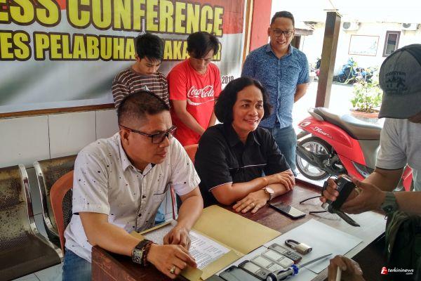 Makassar, Terkininews.com - Panit 1 Reskrim Polsek Ujung Tanah Ipda Baharuddin mendampingi Ipda Tumiar Humas Polres Pelabuhan Makassar melakukan Press Conference terkait penangkapan tindak pidana pencurian.