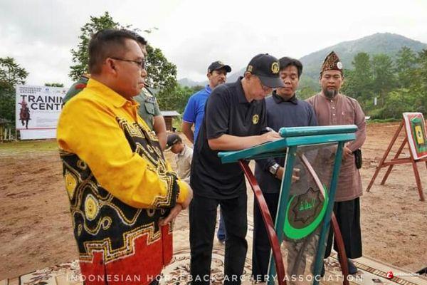 Peresmian Training Centre dibuka oleh Direktur Warisan dan Diplomasi Budaya, Kementerian Pendidikan dan Kebudayaan, Dr. H Nadjamuddin Ramly, M.Si. bersama perwakilan Komite World Horseback Archery Federation (WHAF), Fuad Almudahka dari Qatar di Sariek Laweh, Sabtu (4/1).