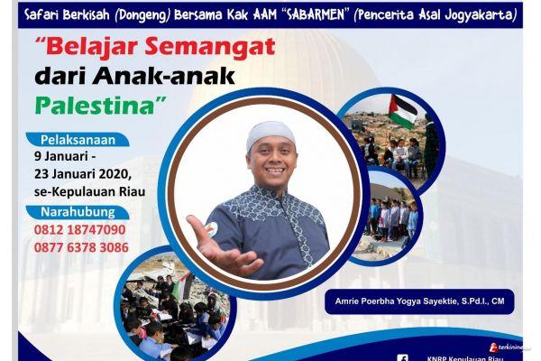 TANJUNGPINANG - Komite Nasional untum Rakyat Palestina (KNRP) Kepulauan Riau menggelar kegiatan safari berkisah (dongeng, red) ke sekolah-sekolah yang dimulai pada 9 hingga 24 Januari 2020 bersama Kak Aam pencerita dari Yogyakarta.