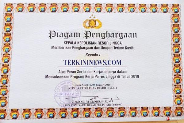 Penghargaan ini mungkin tidak seberapa, tapi inilah bentuk terima kasih kami atas sinergisitas kita selama ini dengan kerjasama yang baik. Momen besar pada pemilu tahun 2019 yang lalu, kabupaten Lingga secara umum sangat kondusif dan aman jika dibandingkan beberapa daerah lain yang sempat bergejolak. Ini tentu bukan kerja kami saja dari Polri, melainkan berbagai stakeholder lain seperti TNI, pemerintah daerah serta rekan-rekan media semua, terakhir saya sebagai Kapolres Lingga berharap kepada seluruh rekan media untuk terus meningkatkan profesionalisme dalam bekerja, ungkap Kapolres menutup sambutannya.
