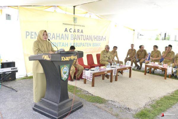 NTB -- Bupati Bima Hj Indah Dhamayanti Putri, SE, menyerahkan bantuan hibah senilai total Rp.1,65 Miliar pada masyarakat, Kelompok Usaha Kecil Menengah, Kelompok Nelayan, Kelompok Tani dan Organisasi Sosial se Kabupaten Bima, Selasa (07/01), di Halaman Kantor Bupati Bima.
