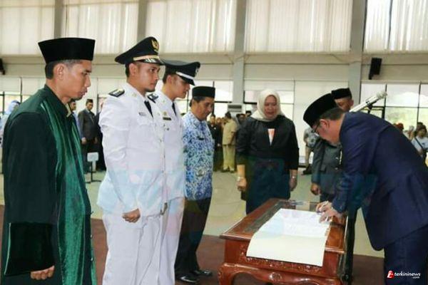 BINTAN - Bupati Bintan Apri Sujadi melantik sejumlah Pejabat Eselon III dan IV di Aula Kantor Bupati Bintan, Bandar Seri Bentan, Selasa (7/1) sore. Dari pejabat yang dilantik, ada sejumlah Camat dan Lurah yang turut dilantik. Untuk jabatan Camat yang dilantik di antaranya, M Sofian sebagai Camat Bintan Timur; Siti Zainah, Camat Mantang; Sutomo, Camat Bintan Pesisir; Firman Setiawan, Camat Bintan Utara; Raja Lukman, Camat Teluk Bintan; Qardinar, Camat Toapaya dan Hasan Basri, Camat Tambelan.