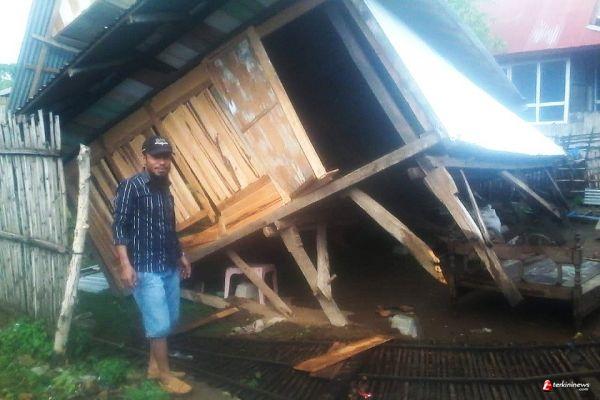 Dihantam Puting Beliung Rumah Panggung 9 Tiang Terpental