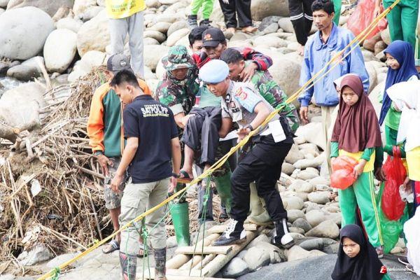 Saat peninjauan, Sabtu (18/1/2019) anggota gabungan dari TNI-Polri bergotong royong, bahu membahu membantu mengevakuasi warga yang terkena bencana juga memperbaiki kerusakan dampak bencana.