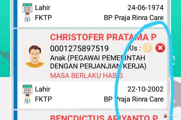 "Saat itu saya mau berobat namun kartu ketinggalan, jadi saya coba buka JKN Mobile aplikasi Bpjs dan ternyata kadaluarsa, anehnya faskes saya kelas 2 tapi faskes anak saya kenapa bisa berada di kelas 3, padahal pendaftaran dan potongan semua di kelas 2" Kata dia