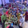 Dengan memakai baju berwarna biru bercorak batik Adik mantan Mentri Pertanian Andi Amran Sulaiman terlihat menerima ajakan dari para ibu-ibu.
