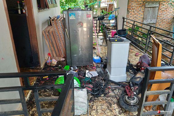 Saking kuat bunyi ledakan baterainya, orang yang ada dirumah itu keluar rumah berteriak minta tolong tetangga untuk membantu memadamkan apinya, untungya ledatakan itu tidak sempat membakar peralatan yang ada disekitarnya.