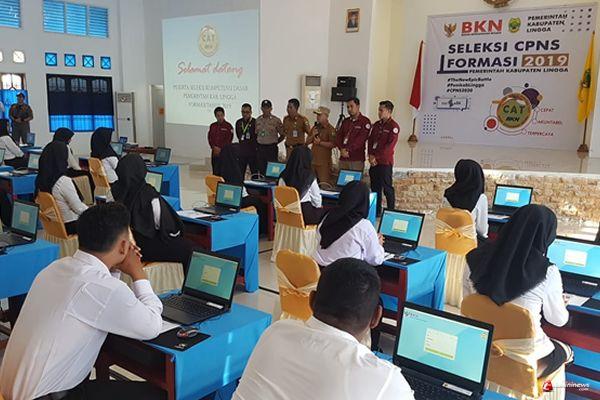 LINGGA - Hari ini,Selasa(25/2/2020) pelaksanaan ujian Seleksi Kompetensi Dasar (SKD) Calon Pegawai Negeri Sipil (CPNS) di pemerintah kabupaten Lingga untuk formasi penerimaan tahun 2019. Pelaksanaan ujian dilaksanakan di aula kantor bupati Lingga.