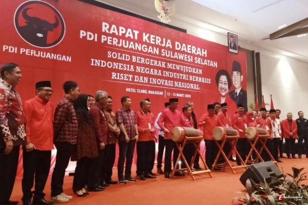 MAKASSAR, -- Bertemakan "Solid Bergerak Mewujudkan Indonesia Negara Undustri Berbasis Riset dan Inovasi Nasional" Partai Demokrasi Indonesia (PDI) Perjuangan Sulawesi Selatan Menggelar Rapat Kerja Daerah (Rakerda) di Phinisi Ballroom Grand Claro,Jalan A.P. Pettarani Makassar