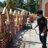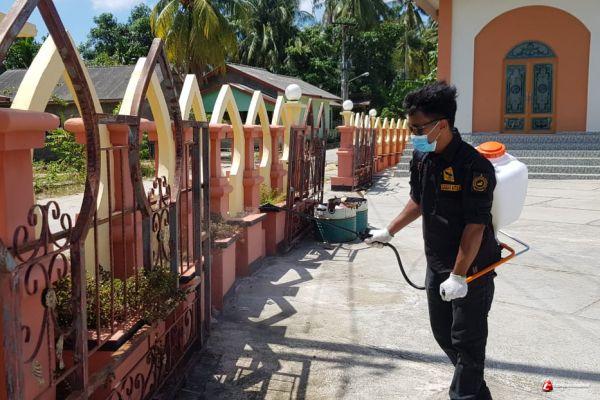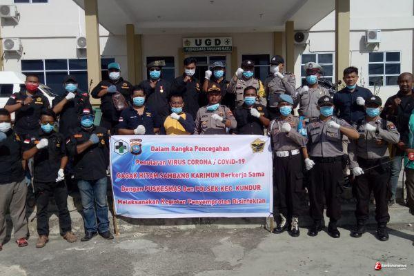 KUNDUR - Untuk mencegah merebaknya virus corona, seluruh elemen bersatu padu melakukan penyemprotan disinfektan di berbagai lokasi. Mereka yang ikut dalam kegiatan itu di antaranya dari aparat TNI, Polres, Puskesmas hingga Gagak Hitam, Rabu, (25/3).