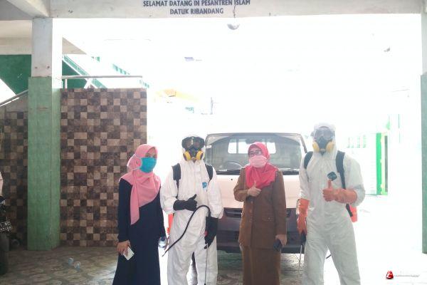 Titik penyemprotan hari ini berada di Sekolah Pesantren Islam Datuk Ribandang, jalan Gatot Subroto IV Makassar. Senin, (30/3/2020).