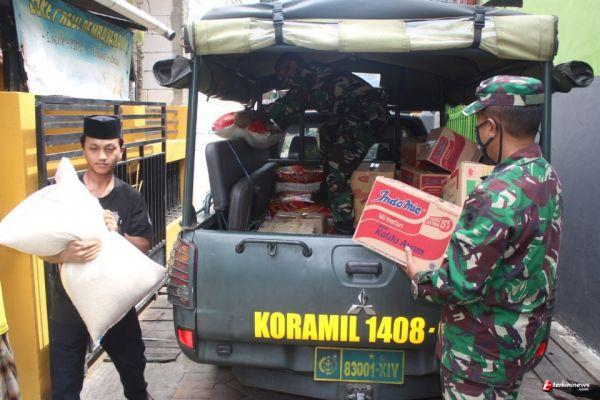 "ini kami bagikan 100 paket sembako untuk warga terdampak Covid-19 yang berisi tiap paket beras 5 kg, minyak goreng 2 liter, minuman 2 botol dan masker 2 buah" ujar Dandim