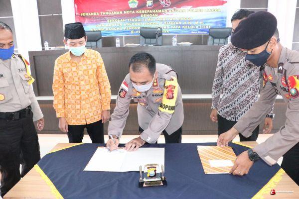 Lingga, -- Kepolisian Resor (Polres) Lingga melaksanakan kegiatan penandatanganan nota kesepahaman antara Polres Lingga dengan Sekolah Tinggi Ilmu Tarbiyah Lingga dan Kantor Advokat Angga P Siagian,S.H.,M.H dalam rangka pengukuran indeks tata kelola (ITK) di gedung Endra Dharmalaksana Polres Lingga,