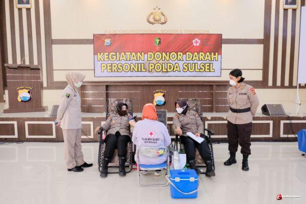 "Ini dalam rangka memperingati HUT polri yang ke-74 dan mengisi keterbatasan stok darah yang dimiliki PMI Sulsel" ucap Kabid Humas (*/)