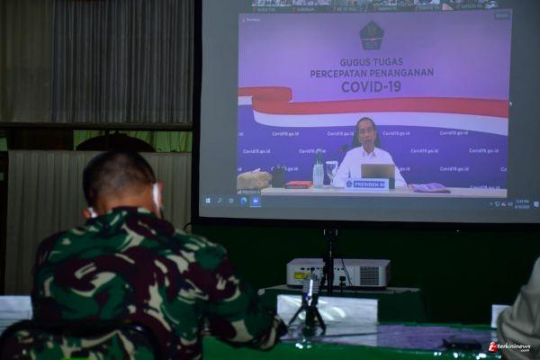 Pangdam XIV Hasanuddin pada kesempatan ini didampingi, Sekda Provinsi Sulsel, Abdul Hayat, Wakapolda Sulsel Brigjen Pol Halim Pagarra dan LO BNBP Sulsel Brigjen TNI Syafruddin, S.Sos., M.M., M.Tr (Han) untuk mendengarkan arahan Presiden Joko Widodo melalui video conference dari Kantor Gugus Tugas Percepatan Penanganan Covid-19 di Graha BNPB.