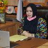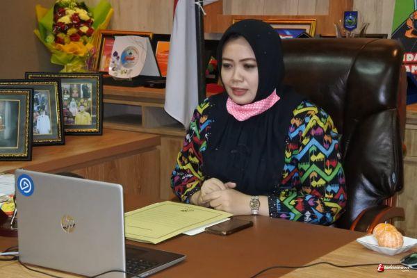 BIMA, -- Bupati Hj. Indah Dhamayanti Putri SE memberikan sambutan pada sosialisasi virtual penanganan limbah bahan berbahaya dan beracun (B3) Infeksius Covid-19 pada Fasilitas Pelayanan Kesehatan (Fasyankes) kerja sama Kementerian Lingkungan Hidup dan Kehutanan RI, Komisi IV DPR RI dan Pemerintah Kabupaten Bima.