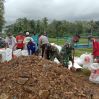 Untuk membantu kesulitan masyarakat akibat sawahnya tertimbun material lumpur, Aparat TNI dan masyarakat serta unsur terkait lainnya berupaya untuk memperbaiki tanggul yang jebol dengan menggunakan 350 karung bantuan dari BPBD yang diisi tanah. "Walaupun sifatnya sementara diharapkan bisa menahan tumpahan air dan lumpur apabila hujan deras datang lagi, sehingga sawah yang berada di area tersebut aman dan dapat ditanami kembali," imbuhnya.