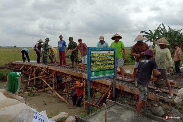 Disamping perbaikan tanggul, peran Babinsa Koramil 09/Kawunganten juga tampak dalam kegiatan pengecoran jembatan jalan pertanian yang berada perbatasan Desa Ujungmanik dan Desa Kubangkangkung Kecamatan Kawunganten. Jembatan tersebut merupakan akses yang paling berharga bagi petani untuk mengangkut hasil pertaniannya sehingga lebih mudah. "Semoga apa yang kita laksanakan hari ini betul-betul dapat dirasakan manfaatnya oleh masyarakat", tandas