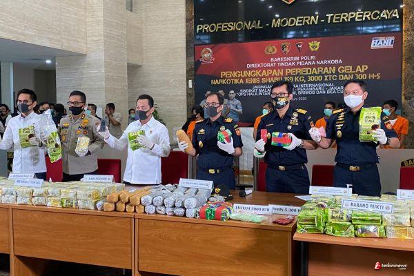 Ops Halilintar 2020 Ungkap Peredaran Gelap Narkotika Jenis Shabu 159 Kg, 3.000 XTC dan 300 H-5