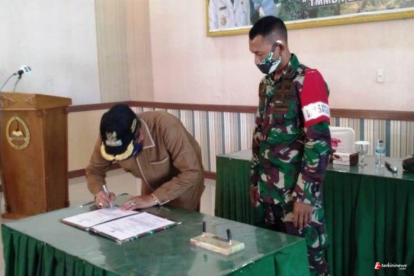 ACEH Barat, -- Komandan Kodim 0105/Aceh Barat Letkol Kav Nurul Diyanto S.Pd, selaku Dansatgas TMMD Reg ke-108 TA. 2020 bersama dengan Bupati Aceh Barat H. Ramli, MS menandatangani kegiatan pembukaan TNI Manunggal Membangun Desa (TMMD) Reg ke-108 TA. 2020, di wilayah kodim 0105/Aceh Barat bertempat di Aula Makodim Jln. Imam Bonjol desa Drien Rampak Kecamatan Johan Pahlawan Kabupaten Aceh Barat, Selasa (30/06/2020).