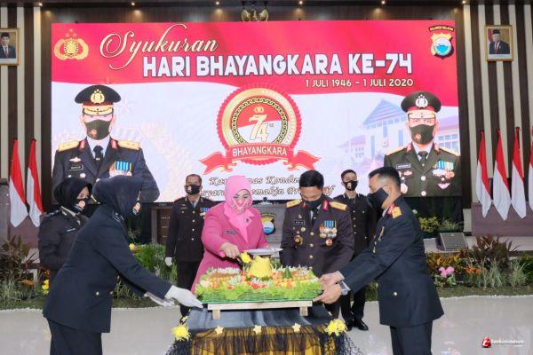 MAKASSAR, -- Kepolisian Daerah Sulawesi Selatan (Polda Sulsel) menggelar syukuran setelah melaksanakan upacara peringatan hari jadi Bhayangkara yang Ke-74 secara Virtual yang mengangkat Tema “Kamtibmas Kondusif, Masyarakat Semakin Produktif” yang digelar di Aula Serba Guna Mapolda Sulsel, Rabu (1/7/2020). terkininews.com
