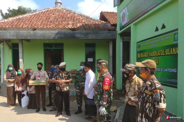 BREBES, – Upaya membantu keringanan dan bersedekah dalam kondisi dan terdampak pandemi covid-19 ini, TNI-Polri dan Forum Komunikasi Putra Putri Purnawirawan Indonesia (FKPPI) kabupeten Brebes serta Pramuka Saka Wira Kartika Koramil 11 Paguyangan Kodim 0713 Brebes memberikan sejumlah paket sembako untuk para santri di Pondok Pesantren Al Banna RT 01/01 Dukuh Kedung Banteng, Desa Paguyangan, Keamatan Paguyangan, Kabupaten Brebes, Jawa Tengah. Minggu (19/07/2020).