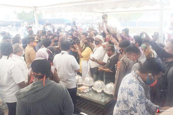 Usai menyerahkan bantuan kemanusiaan yang diserahkan Menteri Pertanian kepada Bupati Luwu Utara, rombongan kemudian lanjut mengunjungi Kabupaten Wajo.
