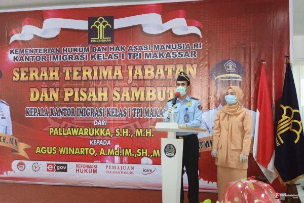 MAKASSAR, - Kepala Kantor Imigrasi Kelas I TPI Makassar, Andi Pallawarukka resmi digantikan oleh Agus Winarto yang hari ini sertjab dan Pisah Sambut Kepala Kantor Imigrasi Kelas I TPI Makassar digelar.