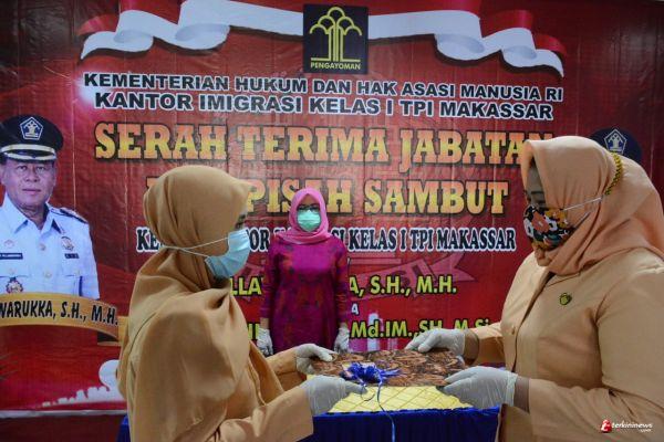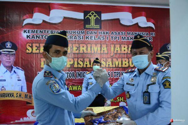 Acara Serah Terima Jabatan dan Pisah Sambut Kepala Kantor Imigrasi Kelas I TPI Makassar dihadiri langsung Kepala Kantor Wilayah Kementerian Hukum dan HAM Provinsi Sulawesi Selatan, Harun Sulianto. Senin (3/8/2020) terkininews.com